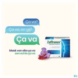 ¹ Zaffranax® contient du safran qui soutient l'équilibre émotionnel, aide à se détendre et à conserver un état d'esprit positif. Il contient du magnésium qui contribue au maintien d'un esprit serein et qui aide à réduire la fatigue, de la vitamine B5 qui contribue à des performances mentales normales, y compris la résistance au stress et la concentration ainsi que des vitamines B6, B9, B12 qui aident à réduire la fatigue.