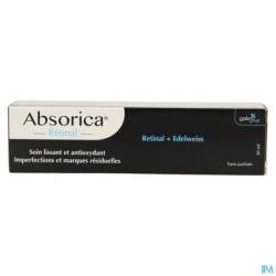 EIGENSCHAPPEN : Absorica® retinaldehyde is een doeltreffende gladmakende gezichtsverzorging dankzij de combinatie van actieve stoffen met aanvullende eigenschappen: retinaldehyde en extract van Leontopodium alpinum. Retinaldehyde maakt de huid glad, reguleert en verzacht. Edelweiss (Leontopodium a.) staat in het bijzonder gekend om haar verzachtende, samentrekkende en antioxiderende eigenschappen.