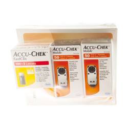 De Accu-Chek Mobile zorgtrajectkit bevat 1 Accu-Chek Mobile meter, 1 Accu-Chek FastClix prikker, 18 Accu-Chek FastClix lancettenhouders met 6 lancetten, 3 Accu-Chek Mobile cassettes met 50 testen. Kortom, deze kit bevat al het materiaal dat wordt terugbetaald binnen het zorgtraject voor 6 maanden.