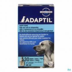 Gebruik de ADAPTIL Calm Navulling elke maand om je hond gerust te stellen bij nieuwe ervaringen of bij situaties die angst oproepen en voor stress zorgen, zoals alleen thuisblijven, harde geluiden en visite