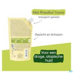 De emolliërende wasolie reinigt en verzacht de fragiele droge huid met neiging tot atopisch eczeem. Onmiddellijk na het aanbrengen is 100% van de huid verzacht¹. In drie weken tijd is de droogheid met 95%² verminderd. De BIOLOGISCH AFBREEKBARE* formule met 91% natuurlijke ingrediënten kan dagelijks gebruikt worden onder de douche of in bad, op het gezicht en op het lichaam. De formule met verzachtend en anti-irriterend Rhealba Haverkiemextract voedt deze fragiele huid en laat haar weer comfortabel aanvoelen. De huidbarrière van de droge huid met neiging tot irritatiepieken wordt beschermd, droogte en jeuk worden verminderd. Geschikt voor volwassenen, kinderen en zuigelingen, zonder toegevoegde zeep en prikt niet in de ogen. Rhealba ® haver van biologische teelt. Vegan Info: zonder ingrediënten van dierlijke oorsprong. ¹ Percentage van tevredenheid. Klinisch onderzoek bij 43 proefpersonen (zuigelingen, kinderen, volwassenen). Resultaten onmiddellijk na toepassing.² Klinische score. Klinisch onderzoek bij 43 proefpersonen (zuigelingen, kinderen, volwassenen). Resultaten op D22.* Volgens de OESO-norm 301B