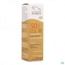 ALGAMARIS CREME SOLAIRE VISAGE TEINTEE DOREE SPF30 / ALGAMARIS GOLDEN SHADE FACE SUNSCREEN SPF30 INGREDIENTS : Aqua, Coconut Alkanes, Caprylic/Capric Triglyceride, Titanium Dioxide, Sorbitan Olivate, Zinc Oxide, Talc, Silica, Glycerin**, Polyglyceryl-2 Dipolyhydroxystearate, Octyldodecanol, Coco-Caprylate/Caprate, CI 77492, Parfum, Alumina, Polyglyceryl-3 Diisostearate, Stearic Acid, Glyceryl Caprylate, Magnesium Sulfate, Gelidium Sesquipedale Extract, Aloe Barbadensis Leaf Juice Powder*, Potassium Olivoyl PCA, CI 77491, Maris Aqua, CI 77499, Sodium Benzoate, Potassium Sorbate, Tocopherol, Jojoba Esters, Trihydroxystearin, Helianthus Annuus Seed Oil, Sodium Hydroxide 99.6 % du total des ingrédients sont d'origine naturelle /