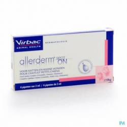 GEBRUIKSAANWIJZING:Om de pipet te openen houd deze rechtop en draai de punt van de pipet tot deze afbreekt. Kat: Doe de haren in de nek opzij tot de huid te zien is. De pipetpunt direct op de huid plaatsen, voorzichtig in de pipet knijpen en de vloeistof op de huid aanbrengen. Herhaal dit tussen de schouderbladen. Hond: De haren tussen de schouderbladen opzij doen tot de huid te zien is. De pipetpunt direct op de huid plaatsen, voorzichtig in de pipet knijpen en de vloeistof op de huid aanbrengen. Herhaal dit op de rug tot de pipet leeg is. Allerderm® Spot On kan ook aangebracht worden op huid die niet intact is.