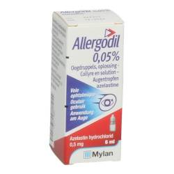 - ALLERGODIL Oogdruppels bevatten benzalkoniumchloride. Het dragen van soepele contactlenzen is dus tegenaangewezen. Voor de andere contactlenzen, is het aanbevolen deze voor het toedienen van ALLERGODIL Oogdruppels te verwijderen en ze pas na minstens 15 minuten terug in te brengen.