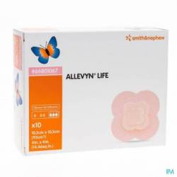 Wondverzorging bij secundaire genezing van oppervlakkige en granulerende wonden, chronische en acute exsuderende wonden, matig tot diepe wonden zoals decubitus, ulcus cruris, diabetische beenulcera, geïnfecteerde wonden, oncologische wonden, operatiewonden, eerste- en tweedegraads brandwonden, donorplaatsen, skin-tears, schimmelende ulcera. Gebruik ALLEVYN Life niet met oxiderende stoffen zoals hypochlorietoplossingen (bv. EUSOL) of waterstofperoxide, aangezien deze de absorberende polyurethaan componenten van het kompres kunnen afbreken. Stop met het gebruik als roodheid of gevoeligheid optreedt.