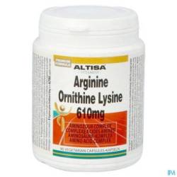 Arginine Lysine Ornithine 610mg van Altisa bevat in één enkele vegetarische capsule een uitgebalanceerde combinatie van deze drie aminozuren, die onder andere essentieel zijn voor een goede proteïnensynthese.