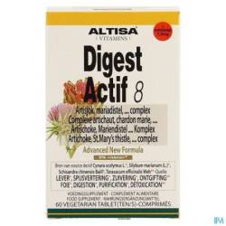 De vegetarische formule Digest Actif 8 van Altisa bevat in één enkele vegetarische tablet een exclusieve mengeling van bijzonder aktieve planten voor het behoud van een optimale spijsvertering.
