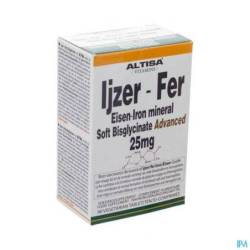 Ijzer Soft Bisglycinaat Advanced 25mg van Altisa bevat de betere bisglycinaat chelaatvorm van ijzer. Doordat deze bijzondere organische en beter opneembare vorm van ijzer gecheleerd is met moleculen van het aminozuur glycine, maakt het een voor de maag zeer zachte vorm van ijzer waardoor er geen irritatie in de darmen veroorzaakt wordt, noch constipatie.