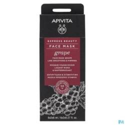 EXPRESS BEAUTY gezichtsmasker met druif, het geheim van een lange levensduur in de gebieden van de Middellandse Zee, rijk aan voedende elementen, zorgt voor een onmiddellijk anti-oxidant en anti-verouderingseffect op de huid.