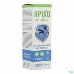 APIXO FAMILY SPRAY is een sterk insectwerend middel op basis van lemon-eucalyptus extracten (zonder DEET). De werkzame stof is Eucalyptus Citriodora Oil, hydrated, cyclized 30% (CAS 1245629-80-4). APIXO FAMILY SPRAY beschermt de huid 4 tot 6 uur tegen (o.a. malaria) muggen, teken en knutten*. Niet gebruiken bij kinderen jonger dan 3 maanden.