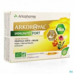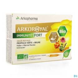 Arkoroyal® Immuniteit Fort BIOis een VOEDINGSSUPPLEMENT op basis van koninginnenbrij, echinacea, propolis, honing en pollen. De Laboratoria ARKOPHARMA hebben ARKOROYAL® IMMUNITEIT FORT BIO ontwikkeld, waarin echinacea gecombineerd wordt met een complex van 5 producten van de bijenkorf: koninginnenbrij, twee complementaire soorten propolis, bruine propolis en groene propolis, manukahoning en pollen. Deze laatste helpt het immuunsysteem te versterken en echinacea ondersteunt de weerstand van het lichaam.