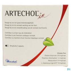 ARTECHOL®© in is een unieke en innovatieve combinatie van rodegistrijst, de gepatenteerde bacterie Lactobacillus rhamnosus Lipo671®, choline en thiamine. ARTECHOL®© in draagt bij tot : - het behoud van een normale cholesterolemie - de instandhouding van een normale leverfunctie - een normaal vetmetabolisme - de normale homocysteïnestofwisseling - een normale hartfunctie