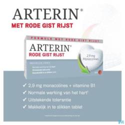 Arterin® Rode Gist Rijst 2,9 mg monacolines is een voedingssupplement bestaande uit 2,9 mg monacolines uit Rode Gist Rijst en vitamine B1. Het draagt bij tot een normale werking van het hart¹ en heeft een uitstekende tolerantie.