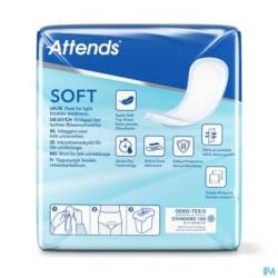 De nieuwe Attends Soft zijn uitzonderlijk dun en daardoor discreet, met een comfortabele zachte bovenlaag. Attends Soft producten hebben een natuurlijke pasvorm en bieden daardoor een perfecte bescherming tegen lekkage. Attends Soft 2 en 3 hebben zachte beschermrandjes voor extra veiligheid.