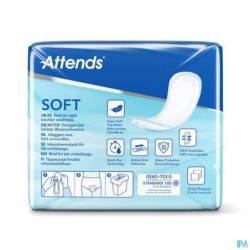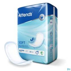 Attends Soft 6 en 7 hebben een sterk absorberende Quick-Dry tussenlaag en kern om langdurige droogheid en huidgezondheid te garanderen. Het vocht wordt raze De nieuwe Attends Soft 6 en 7 zijn comfortabele, zachte en dunne inleggers. De producten hebben een natuurlijke pasvorm voor een perfecte aansluiting op het lichaam. De zachte, elastische beschermrandjes bieden extra zekerheid tegen lekkage.