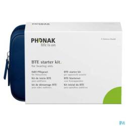 Een stijlvolle tas met rits met daarin de accessoires en gereedschappen die u nodig heeft voor het regelmatig reinigen en onderhouden van uw hoortoestellen om hun levensduur en prestaties te verbeteren.