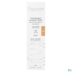 De Couvrance Vloeibare Foundation miel egaliseert en zorgt voor een perfect natuurlijke, egale en stralende teint. Deze vloeibare foundation is bedoeld voor de olijfkleurige en gevoelige huid. Dankzij het fotocorrigerende pigmentcomplex corrigeert en camoufleert hij op subtiele wijze lichte tot matige onvolkomenheden van de huid. Het biedt een SPF 20 UV-bescherming en bevat pre-tocoferyl om foto-geïnduceerde veroudering tegen te gaan. Water- en zweetbestendig.