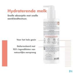 Deze dagverzorging met hoge tolerantie bestaat voor 97% uit bestanddelen van natuurlijke oorsprong. Deze crème versterkt de huidbarrière van gezicht en lichaam. Hydraterende en voedende melk voor de gevoelige en droge huid van het hele gezin. De formule bevat mariadistelolie die de synthese van ceramiden stimuleert en huiduitdroging voorkomt. De licht geparfumeerde formule heeft een heerlijke crème-textuur die onmiddellijk in de huid trekt en die zich al even vlot laat aanbrengen als een vloeibare melk. Vermindert het trekkerige gevoel, voedt en hydrateert de huid 48 uur lang*. XERACALM NUTRITION hydraterende melk is op milieuverantwoorde wijze vervaardigd. De verpakking met 400 ml inhoud bestaat voor 70% uit gerecycleerd materiaal. Het flesje is gemaakt van 100% gerecycleerd plastic**