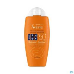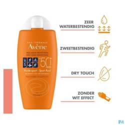 De lichte en zeer water- en zweetbestendige* SPF 50+ Fluide Sport, is perfect aangepast aan de gevoelige huid van sportbeoefenaars, zelfs tijdens de meest intense inspanningen. De SPF 50+ Fluide Sport bevat een exclusieve combinatie van beschermende Sunsitive®-bestanddelen, ontwikkeld door Pierre Fabre Research, die zijn samengesteld uit: • Een gepatenteerd filtersysteem dat slechts 4 zonnefilters bevat die een zeer brede en stabiele UVB-/UVA-bescherming bieden en met een optimale huidtolerantie. • Provitamine E (pre-tocoferyl) met krachtige antioxiderende werking die de cellen beschermt tegen vrije radicalen. • Thermaal Water van Avène dat bekend staat om zijn kalmerende, anti-irriterende en verzachtende eigenschappen. Het praktische airless flesje met pompje maakt het gemakkelijk om de juiste hoeveelheid product te doseren.