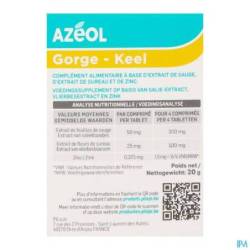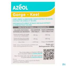 Het voedingssupplement Azéol Zuigtabletten bevat salie, dat helpt de keel te verzachten en zink dat bijdraagt aan de normale werking van het immuunsysteem.