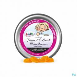 Bach Bloesems Pastilles met zoetstoffen. Uit acaciasap (Arabische gom) met extracten uit originele Bach Bloesemss. Frambozensmaak. Vrij van gluten en lactose. Zonder vet, alcohol, aspartaam en dierlijke gelatine. Voedingswaarden per 100 g: Calorieën: 887,9 kJ (216,6 kcal); Eiwitten: 2,0g; Koolhydraten: 44,45 g, waarvan suikers: < 0,1 g, waarvan meerwaardige alcoholen (polyolen): 44,4g; Vetten: 0,3 g, waarvan verzadigde vetzuren: <0,1g; Vezels: 47,3 g; Natrium: 0,02 g