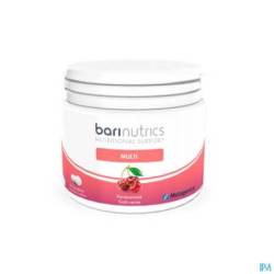 BariNutrics Multi bevat vitamine B1, B2, B3, B5, B6 en B12, die het energieniveau ondersteunen. Vitamine B6 en B12 dragen samen met folaat ook bij tot een vermindering van de vermoeidheid. Daarnaast bevat BariNutrics Multi vitamine C, D, zink en selenium, die een normale werking van het immuunsysteem ondersteunen en vitamine E, die samen met selenium en zink helpen om de cellen te beschermen tegen oxidatieve schade.
