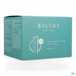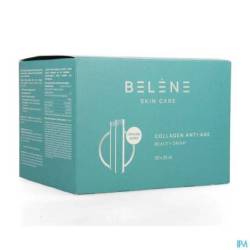Belène® Collagen Anti-Age Beauty Drink bevat 5 g marine collageenpeptiden, waarvan de doeltreffendheid wetenschappelijk is aangetoond: tot ±15% minder rimpels na 8 weken en een blijvend effect tot 4 weken na het stoppen van de inname¹. Daarnaast zorgt 120 mg hyaluronzuur voor een zichtbaar meer gehydrateerde en stralende huid, terwijl vitamine C, B2, E en zink de huid van binnenuit ondersteunen² ³ ⁴ ⁵ ⁶.