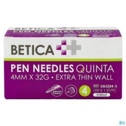 Betere doorstroming van de insuline. Het is belangrijk dat de insuline zo soepel mogelijk doorstroomt bij de injectie. Ook draagt dit bij aan meer injectiecomfort en een kortere injectieduur. Daarom hebben Betica-pennaalden een (extra) dunne naaldwand. Zo is de binnenste diameter zo groot mogelijk in verhouding tot de dikte van de pennaald.
