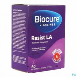Biocure® Long Action Resist is een bron van zink, seleen, vitamine C, vitamine B3, vitamine B6 en twee versterkende planten, nl. Cat's Claw of katsklauw (Uncaria tomentosa) en rode zonnehoed (Echinacea purpurea).
