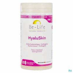 HyaluSkin, een doeltreffend complex voor een vollere huid Collageen en hyaluronzuur vormen de natuurlijke bouwstenen van de huid. Ze zijn essentieel om onze huid gehydrateerd en soepel te houden. Wanneer we ouder worden, maakt ons lichaam minder van beide stoffen aan, wat leidt tot een minder soepele, stevige en stralende huid. HyaluSkin bevat verschillende voedingsstoffen die zijn afgestemd op uw huid zodat die opnieuw straalt. De formule van HyaluSkin bevat: Hyaluronzuur dat het huidherstel bevordert voor een gladde en stralende huid Zeecollageen dat de huid gehydrateerd en soepel helpt houden Vitamine C die een rol speelt bij de collageenaanmaak Co-enzym Q10 (of ubiquinon), een krachtige antioxidant die het lichaam op basis van de behoeften zelf kan aanmaken, maar die het lichaam met het ouder worden steeds minder aanmaakt.