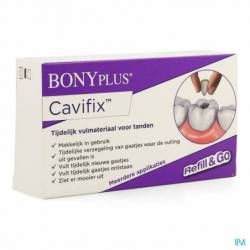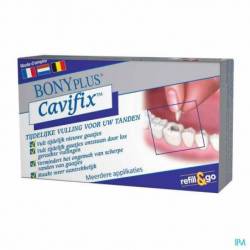 Cavifix is een klinisch getest, gebruiksklaar vulmateriaal op basis van synthetische hars, ontworpen om nieuw gevormde gaatjes tijdelijk te dichten en verloren vullingen of inlays te repareren. Cavifix is geen permanent vulmateriaal en is ideaal voor gebruik in noodgevallen om een verloren vulling te vervangen of te repareren. Het is een sterk, tijdelijk fixerend cement dat echter gemakkelijk door een tandarts kan worden verwijderd. Het product is veilig, irriteert het tandvlees niet en bevat dezelfde ingrediënten die tandartsen gebruiken voor noodvullingen.