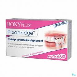 Bonyplus Fixobridge is een tijdelijke hechtcement waarmee u een losgeraakte kroon, brug of vulling tijdelijk kunt vastzetten. Het is een gebruiksvriendelijk product waarmee u pijn en ongemak kunt verlichten tot uw volgende bezoek aan de tandarts. De pasta hardt uit bij contact met speeksel en zorgt voor een stevige maar tijdelijke bevestiging.