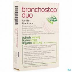 BRONCHOSTOP® DUO Hoestpastille is een geneesmiddel ter bevordering van ophoesten van vastzittend, taai slijm bij productieve hoest bij een verkoudheid.