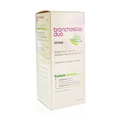 BRONCHOSTOP® DUO Hoestsiroop is een geneesmiddel ter bevordering van ophoesten van taai slijm bij productieve hoest in verband met een verkoudheid, en ter verlichting van irritatie van de keel en de daarmee gepaard gaande droge hoest (ook gekend als een 'kriebelhoest' of 'prikkelhoest').