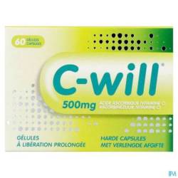 C-will is een capsule gevuld met microgranulen waaruit vitamine C geleidelijk wordt vrijgeven. Hierdoor kan het lichaam gedurende een langere periode vitamine C opnemen. Eén C-will capsule van 500 mg per dag zou al voldoende kunnen zijn.