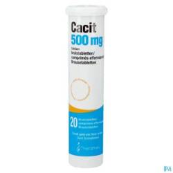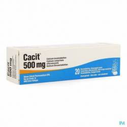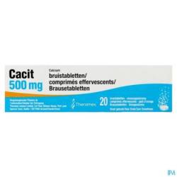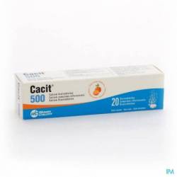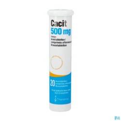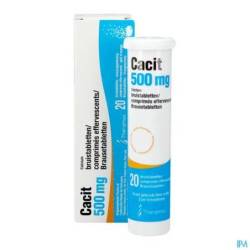 Cacit 500 mg: calciumcarbonaat 1250 mg (= 500 mg elementair calcium)Hulpstoffen met bekend effect: dit geneesmiddel bevat 5,25 mg natrium en 2mg zonnegeel (E110) per tablet. Andere ingrediënten: citroenzuur, natriumcyclamaat, saccharinenatrium, E110 zonnegeel, natuurlijk sinaasappelaroma