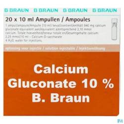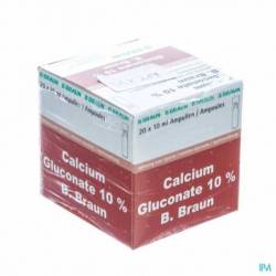 Ampullen calcium gluconaat 10% voor acute symptomatische hypocalciëmie.