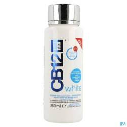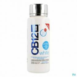 CB12 White Mondwater is wetenschappelijk bewezen: CB12 White Mondwater helpt de tanden witter te maken al na 2 weken daags spoelen na het tandenpoetsen. Het helpt vlekdeeltjes (bijvoorbeeld van koffie, thee, rode wijn en nicotine) die tanden verkleuren te verminderen en beschermt tegen nieuwe vlekken. CB12 White Mondwater schuurt de tanden niet en bevat fluoride om het glazuur te versterken en voor bescherming tegen gaatjes. CB12 zorgt voor een een aangename adem voor 12 uur door de processen die een onaangename adem veroorzaken te neutraliseren. De zachte pepermuntsmaak geeft een extra schoon en zacht gevoel. CB12 White Mondwater mag dagelijks gebruikt worden.
