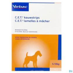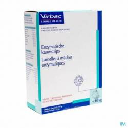 De kauwstrips van Virbac voor honden hebben een mechanische en polijstende werking. Het gepatenteerde C.E.T. Dual Enzyme System stimuleert de bacteriedodende eigenschappen van speeksel. De ruwe textuur van de strips reinigt de tanden door tandplak en voedselresten te verwijderen. De kauwstrips voor honden zijn gebaseerd op kipsmaak.