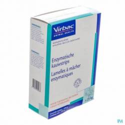 De kauwstrips van Virbac voor honden hebben een mechanische en polijstende werking. Het gepatenteerde C.E.T. Dual Enzyme System stimuleert de bacteriedodende eigenschappen van speeksel. De ruwe textuur van de strips reinigt de tanden door tandplak en voedselresten te verwijderen. De kauwstrips voor honden zijn gebaseerd op kipsmaak.