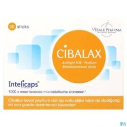 Cibalax bevat psyllium,Bifidobacteriën en Actilight FOS.■ Psyllium absorbeert het water uit de voedingsstoffen waardoor zich in de darmen een gel vormt. Zo wordt op natuurlijke wijze de stoelgang bevorderd. ■ Ieder zakje Cibalax bevat 5 miljard gelyofiliseerde Bifidobacteriën Bb-12. De bifidobacteriën in Cibalax zijn beschermd dankzij de Intelicaps.Dit is een nieuwe microencapsulering technologie die een betere overleving van de bifidobacteriën verzekert. Deze wereldwijde gepatenteerde technologie verbetert de kwaliteit van het product. ■ Actilight FOS is een oplosbare voedingsvezel.
