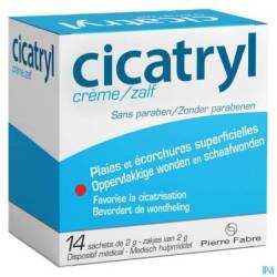 Cicatryl is een medisch hulpmiddel voor de behandeling van oppervlakkige wonden en schaafwonden. De unieke samenstelling van hyaluronzuur, allantoïne en vitamine E zorgt voor een hydraterend en filmvormend effect waardoor een beschermende laag op het oppervlak van de wonden wordt aangebracht. Dit zorgt ervoor dat de irritatie onmiddellijk verzacht en de genezingstijd gehalveerd wordt.*