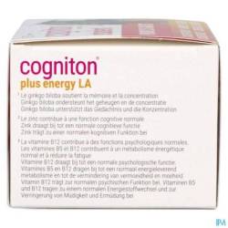 Cogniton plus energy LA is geschikt voor studenten en actieve mensen die hun concentratievermogen op peil willen houden om goed te presteren in tijden van stress en drukke schema's. Denk aan examens of een drukke periode op het werk. Daartoe zijn ingrediënten toegevoegd om de energie op peil te houden en vermoeidheid te helpen verminderen, waaronder vitamine B5 en B124. Dit product bevat ook Guarana.