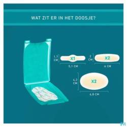 De verpakking bevat twee blarenpleisters medium, twee blarenpleisters small en één blarenpleister voor op de tenen.
