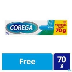 Corega Free maakt deel uit van het Corega gamma kunstgebitkleefmiddelen zonder smaak. Het is vrij van zink en artificiële kleuren.