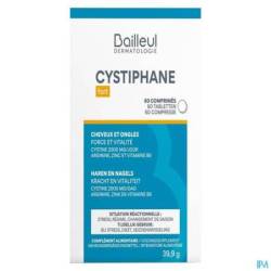 CYSTIPHANE forte is een voedingssupplement op basis van cystine van plantaardige oorsprong, vitamine B6, arginine en zink. Vitamine B6 draagt bij tot de normale synthese van cysteïne. Cysteïne is een essentiële bouwsteen van keratine en speelt een rol in de weerstand en dikte van het haar. Zink draagt bij tot het behoud van normaal haar en nagels en de bescherming van cellen tegen oxidatieve stress. Uw haar en nagels behouden hun kracht en vitaliteit dankzij zink.