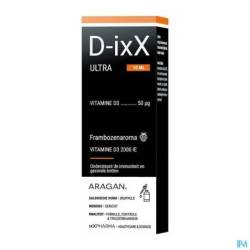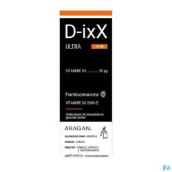 D-ixX ULTRA bevat per druppel 2000 IE of 50 µg natuurlijk vitamine D3, (uit schapenwolvet), opgelost in middellange vetzuurketens (uit kokosolie) voor een goede opname en heeft een aangename, natuurlijke frambozensmaak.