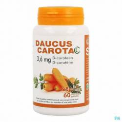 Droog extract van wortel (Daucus carota, wortel) (4:1) 300 mg, capsule: hydroxypropylmethylcellulose, vulstof: calciumcarbonaat, natuurlijk beta-caroteen uit de alg Dunaliella salina, gamma-cyclodextrine