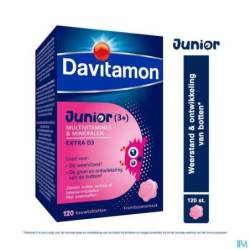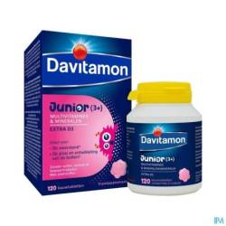 2 kauwtabletten per dag voor kinderen vanaf 3 jaar. Na eerste opening van de verpakking kan Davitamon Junior nog 6 maanden gebruikt worden. De aanbevolen dagelijkse portie niet overschrijden. Voedingssupplementen kunnen geen gevarieerde en evenwichtige voeding vervangen, noch een gezonde levensstijl.