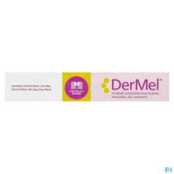 DerMel® huidzalf is een verzachtende zalf voor bescherming en herstel van de geïrriteerde, droge en/of gevoelige huid zoals bijvoorbeeld bij eczeem. DerMel® huidzalf kan ook worden toegepast voor de behandeling van oppervlakkige en geïnfecteerde wondjes, bijvoorbeeld door krabben bij eczeem. DerMel® huidzalf bestaat uit een huidverzorgende zalf in combinatie met zuivere, enzymrijke honing. Door de specifieke samenstelling (o.a. lage pH) wordt de natuurlijke afweer van de huid versterkt. Op de huid bewerkstelligt DerMel® huidzalf een licht koelend effect en geeft daardoor verlichting bij jeuk.